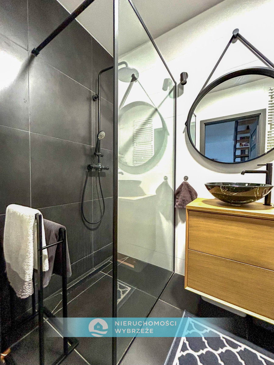 Wnętrze urządzone w nowoczesnym stylu, z dbałością o detale. Mieszkanie jest gotowe do zamieszkania. W cenie pozostają zabudowy stałe oraz część mebli ruchomych (do uzgodnienia).