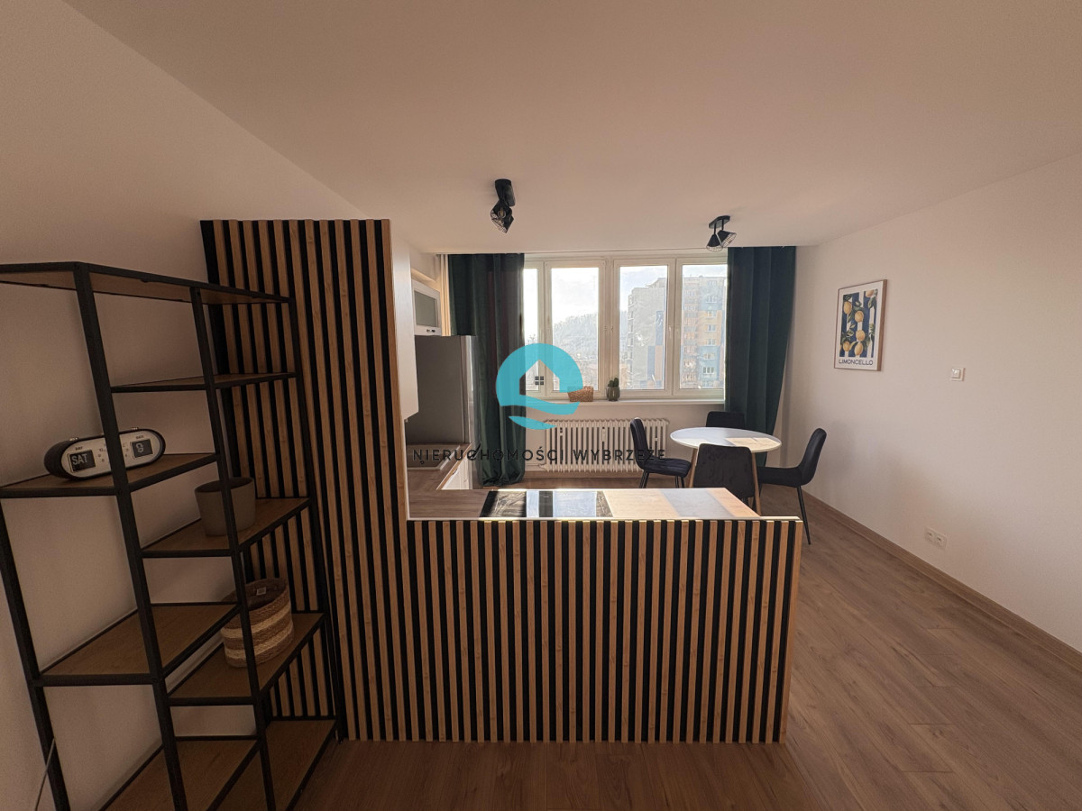 Powierzchnia lokalu to 42,2 m². Znajduje się ono na 9 piętrze i składa się z salonu z aneksem kuchennym z wyjściem na duży zadaszony balkon, sypialni, łazienki z WC oraz przedpokoju. Lokal jest w pełni umeblowany i gotowy do wprowadzenia. Do mieszkania przynależy piwnica. Okna PCV, ogrzewanie i ciepła woda z sieci miejskiej. Czynsz administracyjny wynosi średnio około 500 zł. miesięcznie