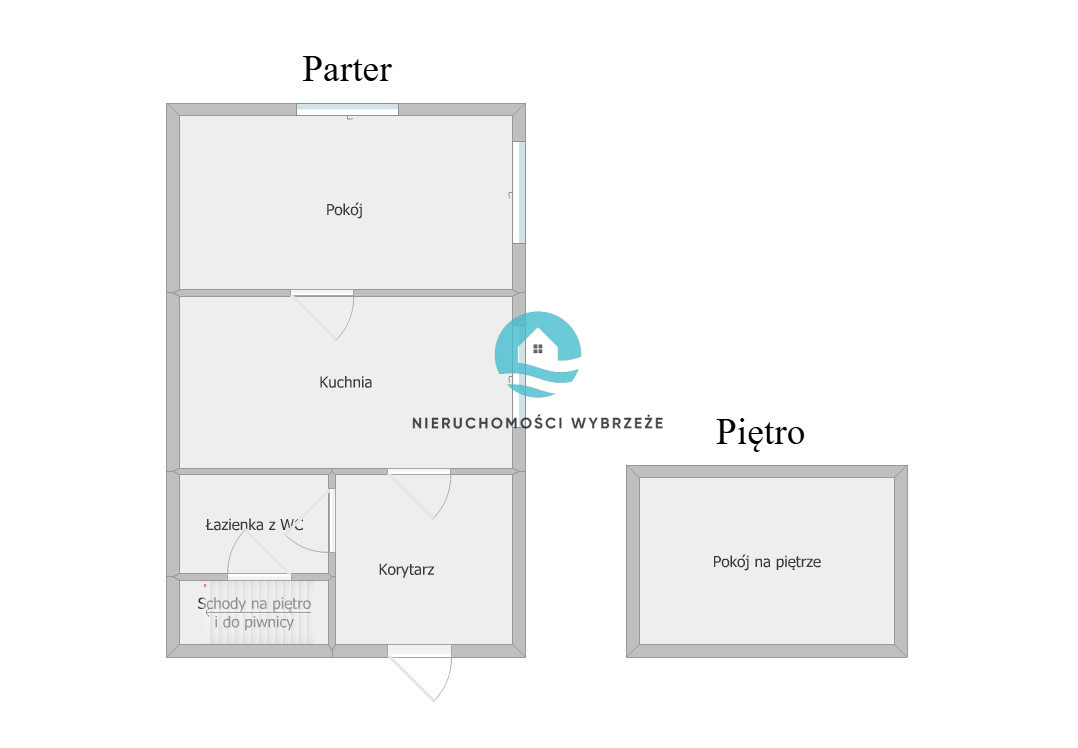 Parter: pokój, duża kuchnia, łazienka z WC, korytarz